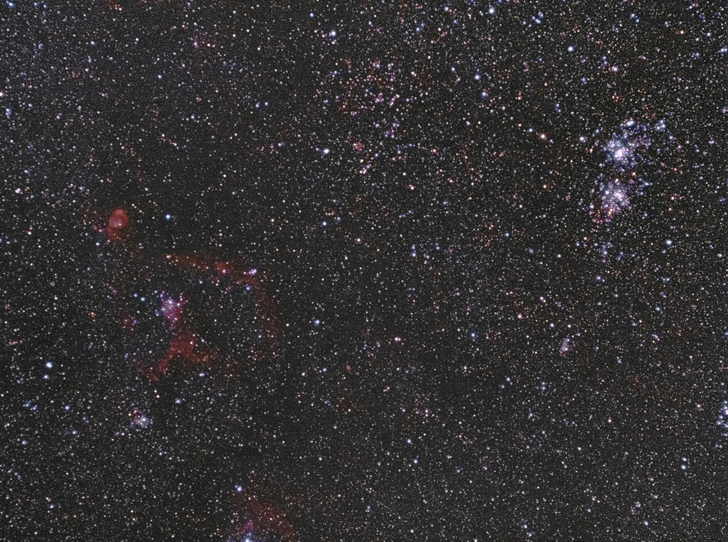 Increase clarity and sharpening to reveal more detail in the stars and galaxies. Reduce noise to improve picture quality. Adjust the color saturation sliders to remove orange or yellow glows and enhance blues and purples.