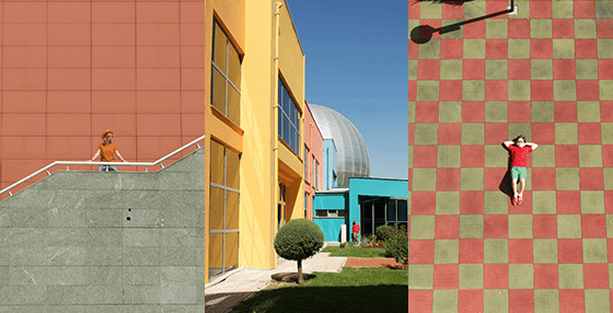 Yener infuses ordinary buildings with playful colors… highlights interesting patterns with clean composition… transforms urban scenes into a utopian playground…